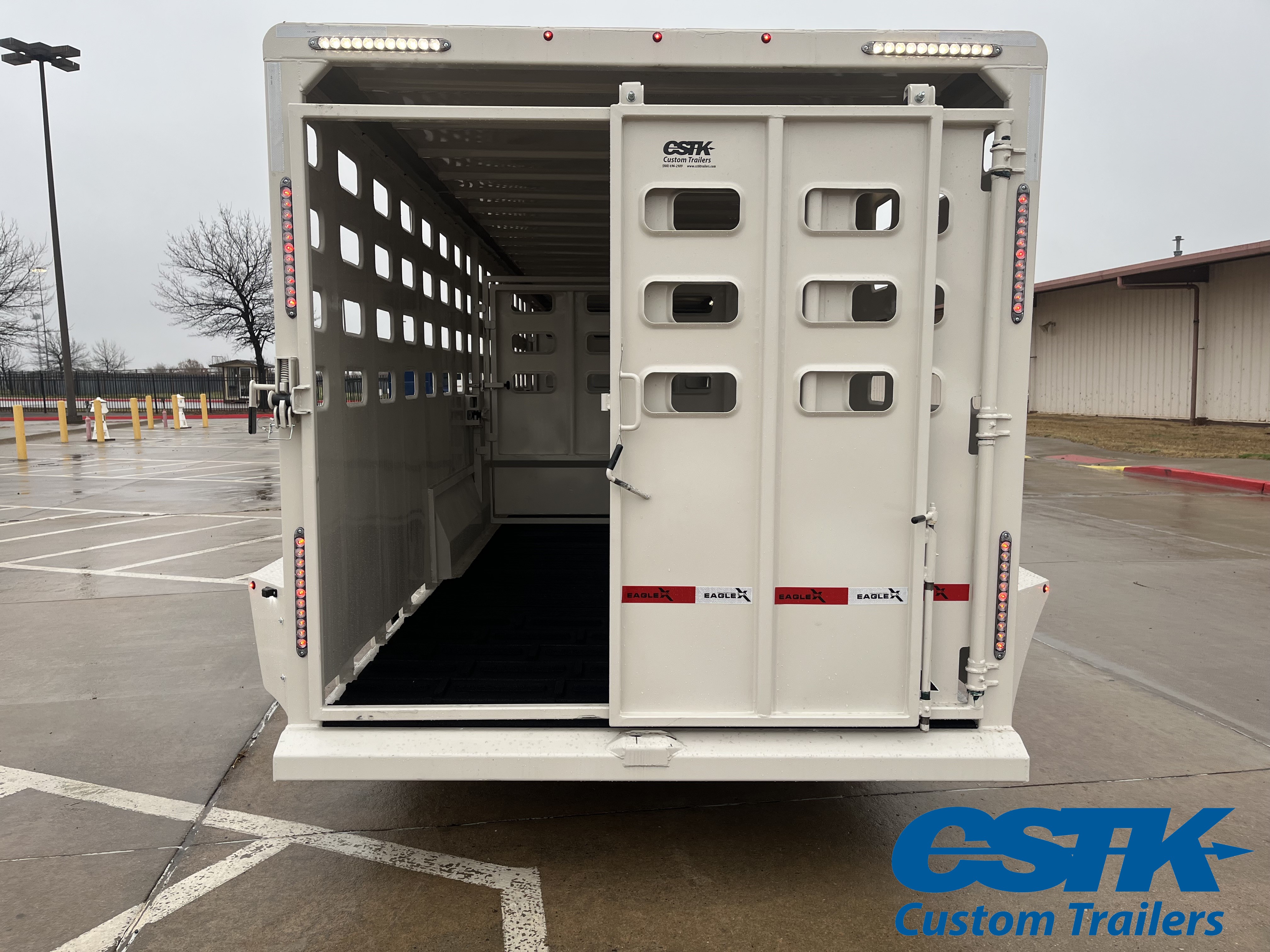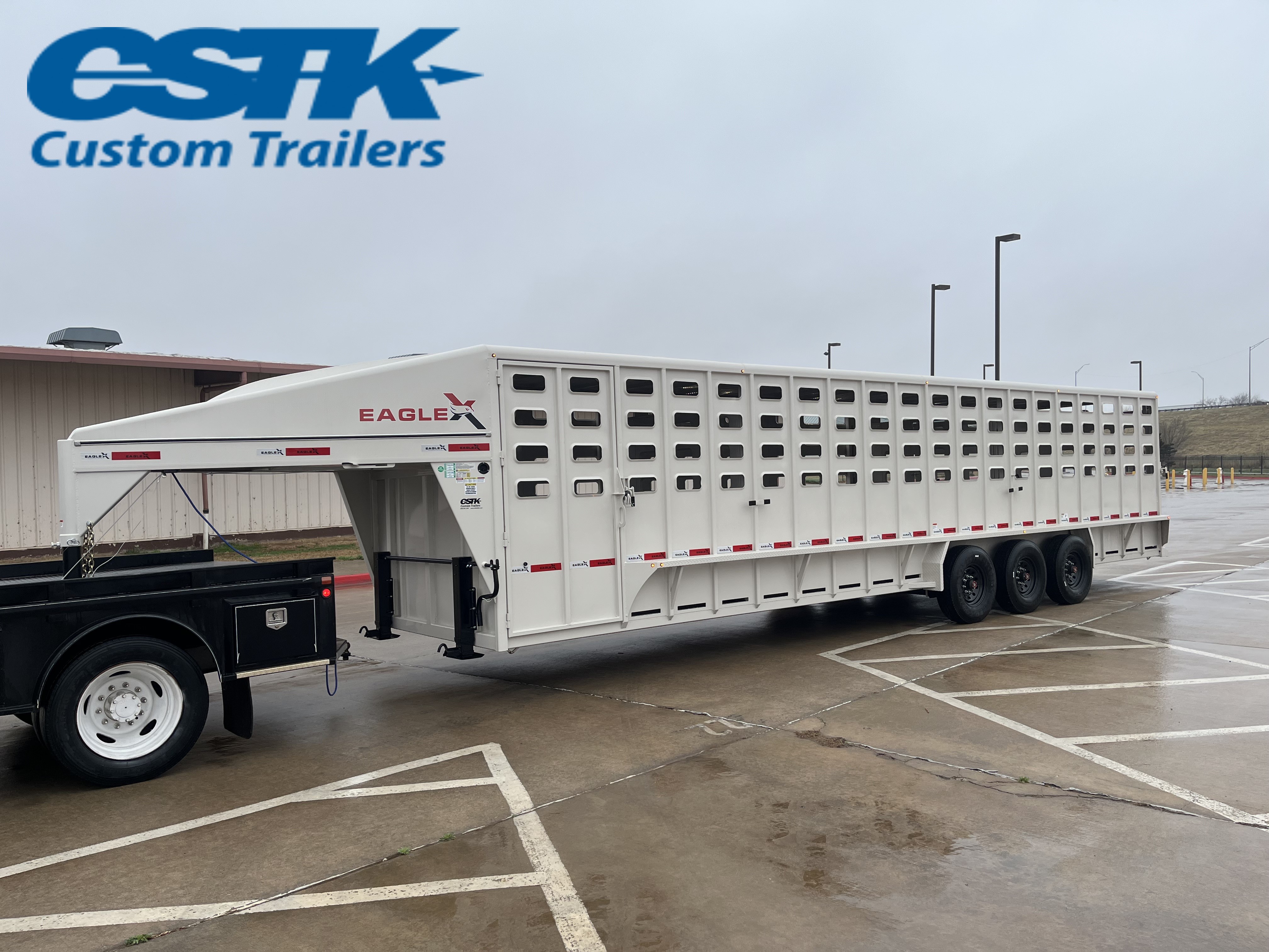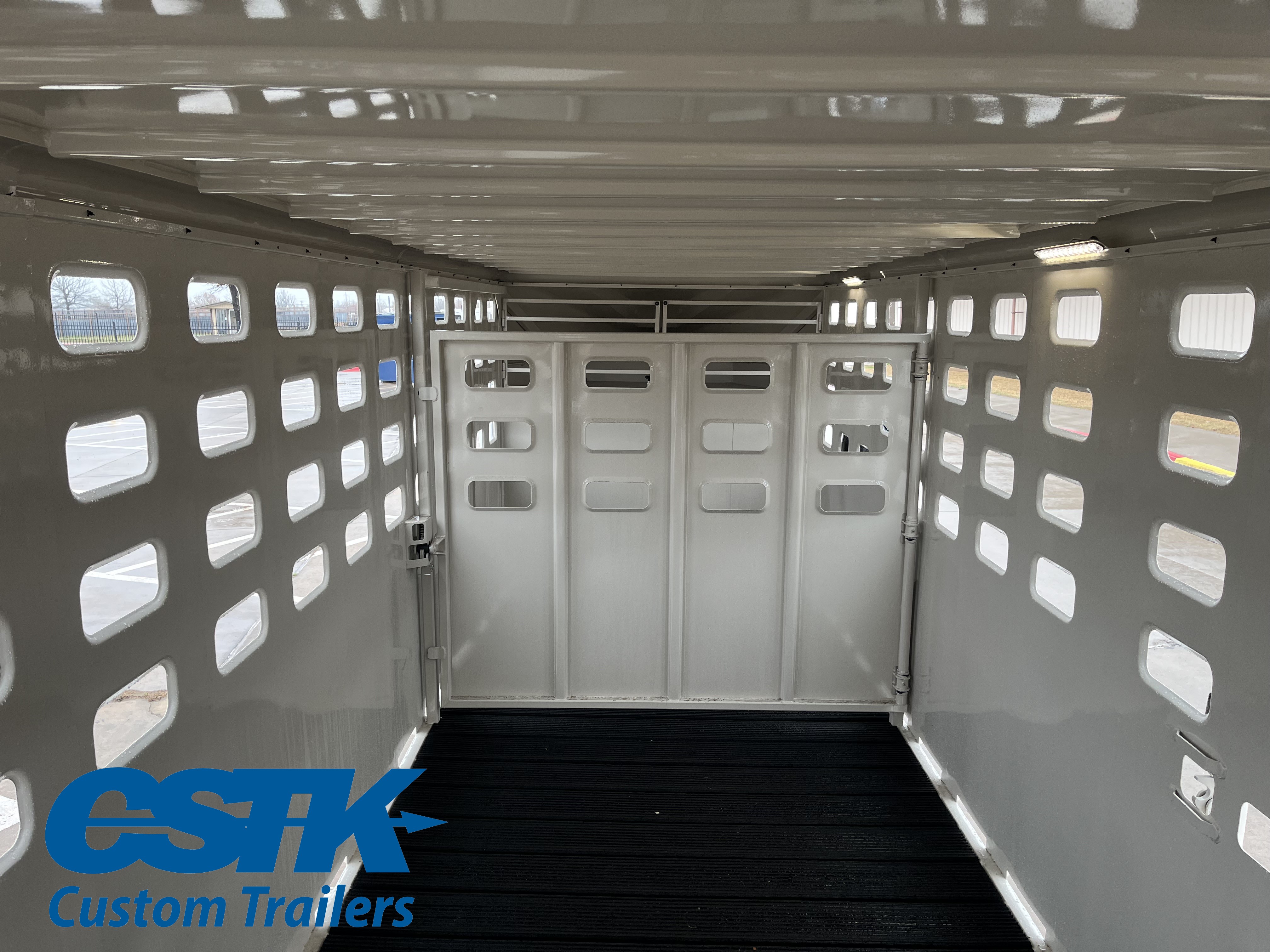 32' long, 7' wide, full length lifetime floor w/ last 4' cleated, 2 - cut gates (8',12',12' sections), full back gate w/ half slider, triple 8K axles, 14ply tires, dual manual jacks and more.